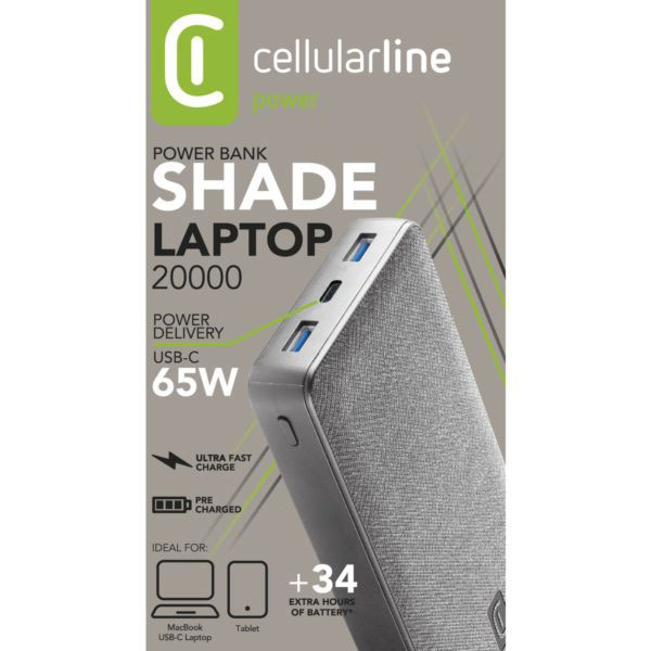 SHADE LAPTOP 20000 is the powerbank with modern fabric cover which makes it attractive and ergonomic, ensuring a solid yet soft-touch grip. What's more, thanks to the Device Detect system, SHADE LAPTOP 20000 recognises the connected device and activa...
