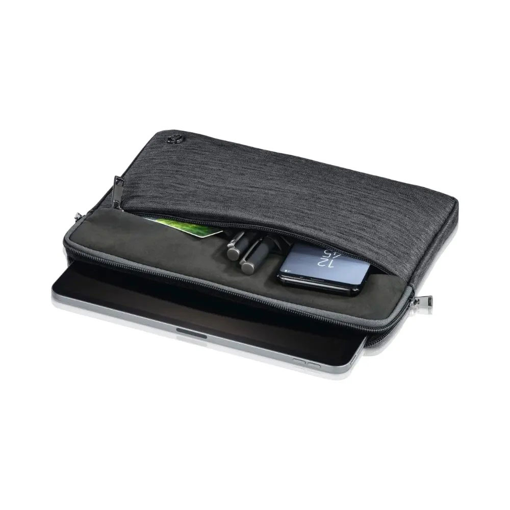 Tayrona Notebook/Tablet Sleeve has padded laptop compartment for reliable protection during transportation. Spacious front pocket for additional accessories or personal items. Organizer structure in the front pocket makes it easy to find accessories being stored. Soft inside lining that protects the sensitive surface of the case. Stable, well thought-out notebook sleeve for safe storage of notebook plus accessories and to protect against dirt and scratches. Modern sleeve with a pleasant feel. Sturdy zipper in gun metal. Made from high quality polyurethane and polyester material. Measure up to 28 cm size and comes in dark grey colour.